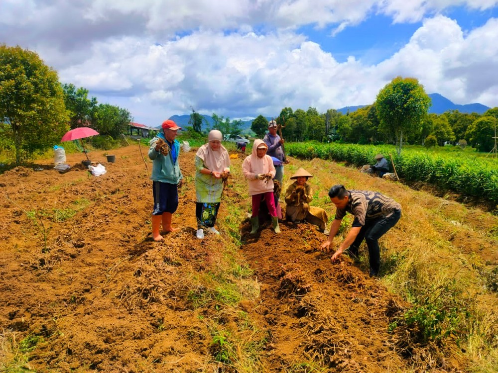 Tutuyan – Dinas Ketahanan Pangan (DKP) Kabupaten Bolaang Mongondow Timur (Boltim) melakukan pemantauan terhadap proses pemanenan komoditas jahe di Kecamatan Mooat dan Modayag, Kamis (25/9/2025).